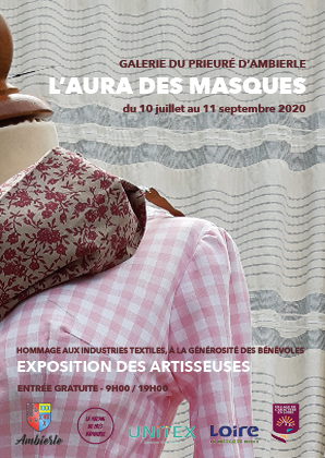 Le printemps 2020 aura marqué l'Histoire mondiale avec la pandémie de Covid 19. La réponse des industries textiles roannaises mais aussi de bénévoles a été de produire en masse des masques de protection. Afin de rendre hommage à cet élan de solidarité et de mettre en lumière l'industrie textile locale, la municipalité d'Ambierle a décidé de lui consacrer son exposition estivale intitulée "L'AURA des masques".